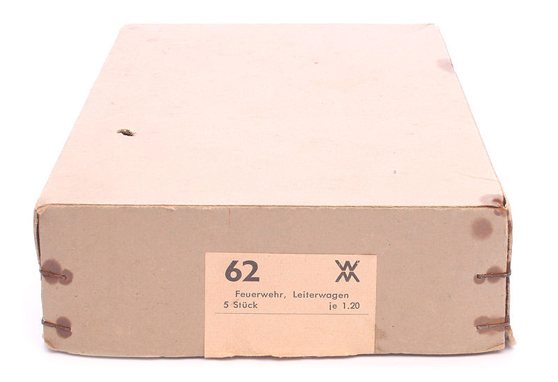 Bemerkungen: Ab 1959 gab es den verglasten Leiterwagen. Der Preis blieb bis 1962 konstant bei DM 1,20. 1963 kam dann der der Sirius-Leitwagen (für DM 2,--!). Eher eine frühe Bestückung mit Aufbauten in orangerot mit geschlossenen Achshalterungen. |