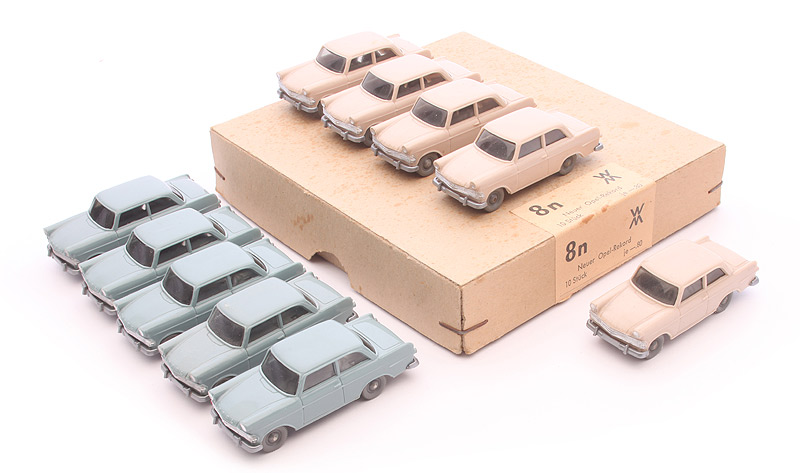 Bemerkungen: Von 1963 bis 1965 kostete dieses Auto 80 Pfennige, ab 1967 90 Pfennige. Die Karton-Bezeichnung "Neuer" Opel Rekord gab es nur 1963 (danach in der Bildpreisliste "Opel Rekord 61"). Damit: zeitliche Zuordnung nur 1963. |