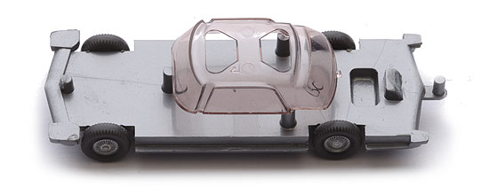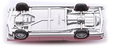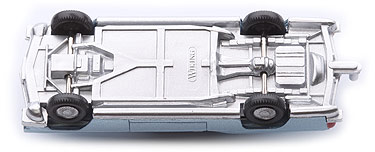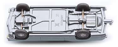 4.1. Chassis mit Zughaken, kleine Chassisplatte mit neuem WIKING-Logo als Bodenprägung und mit großen Pass-Stiften. Räder: neue Riffelkappe mit breiterer Lauffläche. Verglasung auf 3 Stützen des Chassis. Grill gesilbert. Rückleuchten bemalt.