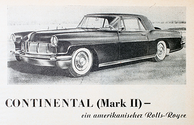Dieses Auto war bei seiner Vorstellung das weitaus teuerste Auto der Vereinigten Staaten: der Continental Mark II kostete knapp 10.000 $, ein vergleichbarer Cadillac lag bei "nur" 6.500 $. Es war preislich etwa gleich auf mit einem Rolls-Royce. Frank Sinatra hatte einen. Elvis Presley hatte einen. Der Schah hatte einen.