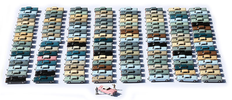 Interessant ist es, bei einer größeren Anzahl von Modellen zu schauen, in wie weit innerhalb einer Farbe Variabilitäten auftreten, wie die Farben statistisch verteilt sind und bei welchen Farben welche Merkmale auffallen. Dies kann bei nur 150 Modellen sicher nicht so aussagekräfig sein, dass es einer Prüfung beim Deutschen Institut für WIKING-Statistik standhielte. Es wirft jedoch ein Schlaglicht auf die Realität.