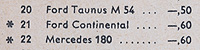 Im Neuen Gelben Katalog (2003) von Herrn Wanner ist das Auto ebenfalls unter dem Namen Ford Continental zu finden. Hier unter der Nummer 210. Es werden 4 Versionen unterschieden: