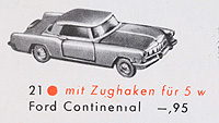 1968 wurde dieses Auto dafür auserkoren, den neuen Wohnwagen zu ziehen, der in diesem Jahr debütierte. In der Neuheitendarstellung ist der Continental halbdurchsichtig vor den Wohnwagen retuschiert. Am Modell wurde der überdimensionierte Zughaken in das Chassis integriert, was wie erwähnt auch in der Liste hervorgehoben wurde.