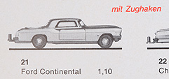 Obgleich sachlich nicht richtig, trägt das Modell bei WIKING von Anbeginn die Bezeichnung "Ford Continental". So kennen wir Sammler dieses Auto.