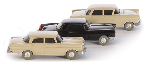 Die frühen nach außen geschlossenen Räder sind übrigens noch bei zwei anderen Modellen anzutreffen: beim Mercedes 220S und bei Opel Kapitän - hier auch in frühen Ausführungen. Die dem Autor vorliegenden Vergleichsmodelle haben alle die Räder mit den großen Bremstrommeln mit gesilberten Speichen.