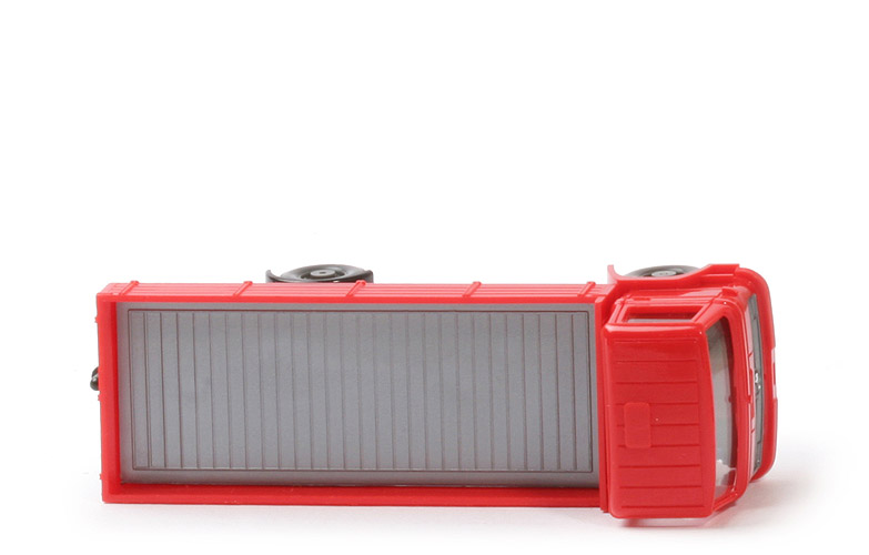 Vermutlich Versuchsmodell. Der nicht vergilbte Öltank mit Füllaggregat liegt lose auf der Pritscheneinlage. Für eine frühe Produktionszeit spricht der Papieraufkleber des Tanks. Rote 1317 Pritschen-Lkw ohne Spiegel sind selten (hier: sehr glasiges Rot). Die Schlauchrolle ist unbemalt.