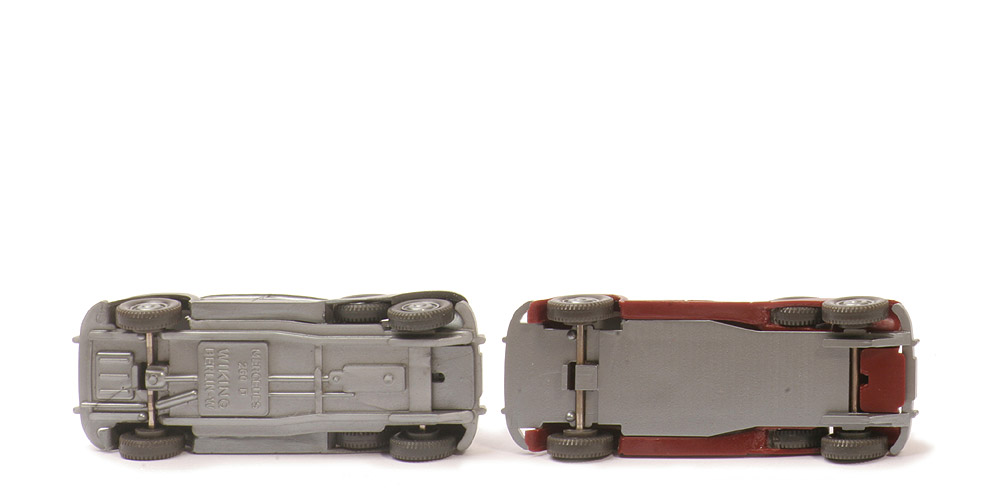 Präzise die Vorserie A aus dem GK. Das Chassis ist von unten ohne Gravur. Keine Innengravur des Sterns und keine Struktur im Grill. Hinten kein Nummernschild auf der Stossstange. Die Stossstangen Hörner graziler als in der Serie. Keine Türscharniere und kein Griff am Kofferraumdeckel hinten.