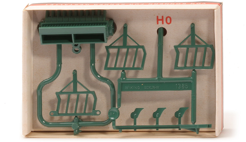 Besonderheit: Es handelt sich um das einzige WIKING-Modell im Maßstab HO aus dieser späten Zeit, bei dem sich die Räder (hier an Pflug und Drillmaschine) nicht drehen. Früher gab es das mal bei Fahrrädern, Mopeds, Motorrädern und Handwagen.