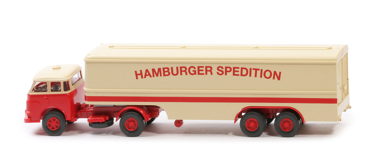 Schönes Retro-Modell, das den Gedanken an die "Hamburger Spedition" wieder aufleben lässt. Einst hatten sich Sammler bemüht, mit Einreichen zahlreicher Vorbildfotos von tatsächlich gelaufenen Lkw der Hamburger Spedition bei WIKING das Thema zu revitalisieren. Aus dem WIKING-Fundus hätten sich spielend etliche Originale darstellen können. Seinerzeit hatte WIKING dies abgelehnt. Nun doch ein schönes Revival.