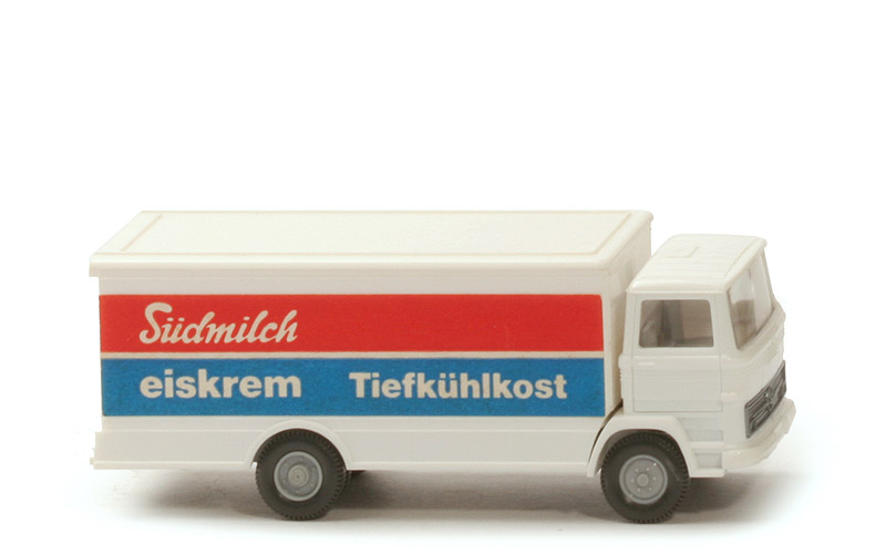 Die Beschriftung ist aus dem Aufkleber für das unten gezeigte Südmilch-Werbemodell ausgeschnitten.