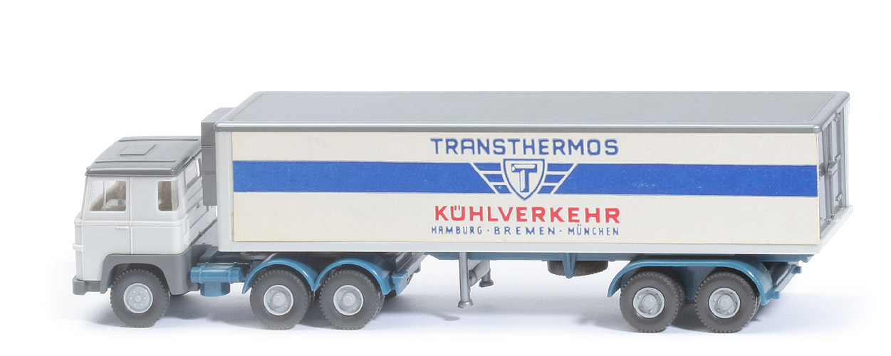 Scania 110 Tiefkühlsattelzug Transthermos - Kab. basaltgrau - altweiß, Chassis azurblau - nicht erfasst