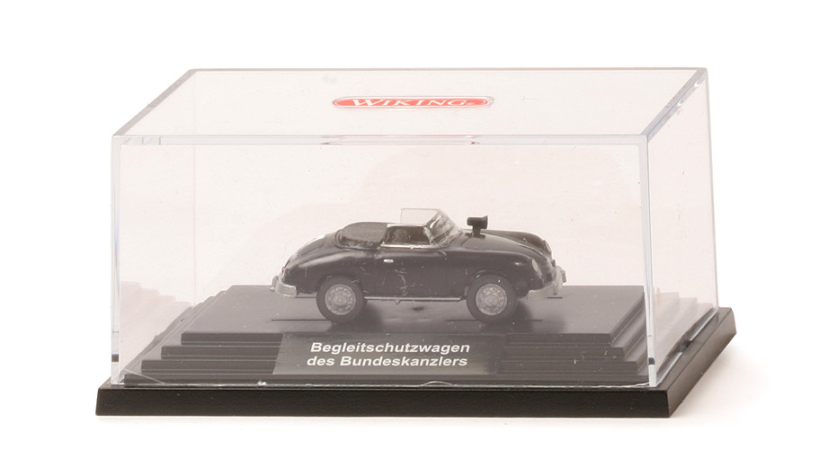 Aus der Sammlerkontor-Edition "Bonner Republik". Laut Umkarton "Polizeilicher Begleitschutzwagen des Bundeskanzlers – Porsche 356". Passend zum Dienstfahrzeug des Bundeskanzlers Adenauer. Mit einem aufgeklebten schwarzen Lautsprecher vorne links.