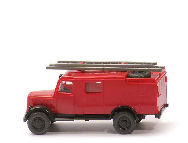 Dieses Modell offenbart, wieso das Chassis hinten irgendwann hinten offen war: genau dieser Aufbau greift dort mit einer Haltenase hinein. Hier noch ohne den Zughaken, der ca. 1987 zwecks Ankupplung des Löschfahrzeug-Anhängers integriert wurde. |