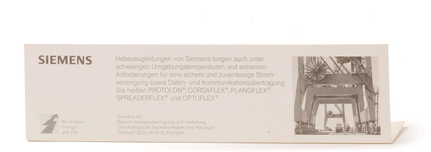 Beschriftung "Siemens Leitungen ... " (s. Foto)