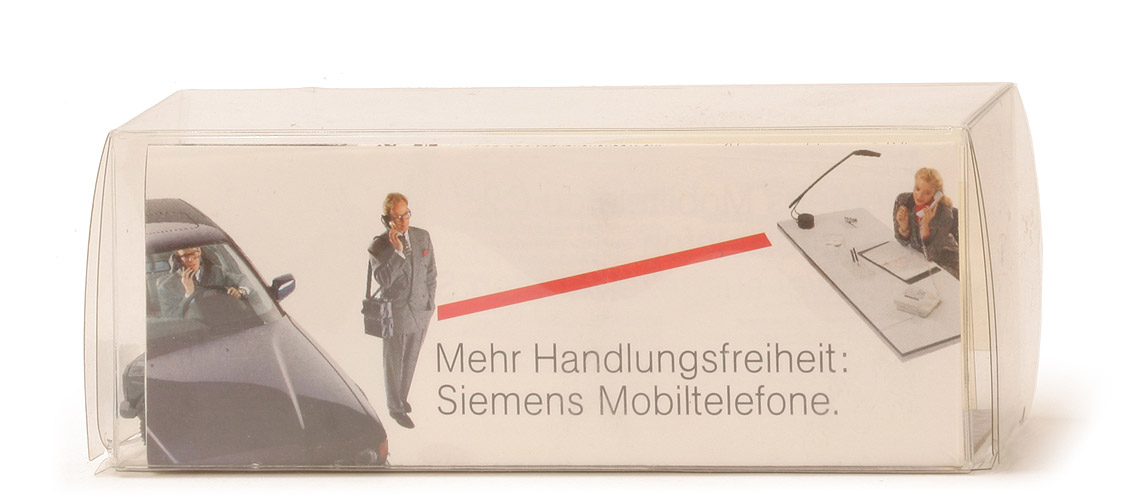 Bei dieser Druckvariante steht die Zeile mit "Siemens" auf der Fahrerseite unten und auf der Beifahrerseite oben. Mit sehr schöner Leporello-Werbeeinlage mit Mobiltelefon an kiloschwerer Box.