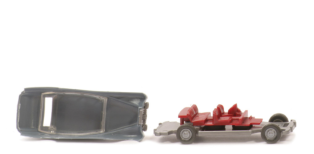 Präzise die Vorserie A aus dem GK. Das Chassis hat keine Bodenprägung. Die Inneneinrichtung ist noch auf 2 PKW-Rädern verklebt. Keine Haltestifte für die Karosserie.