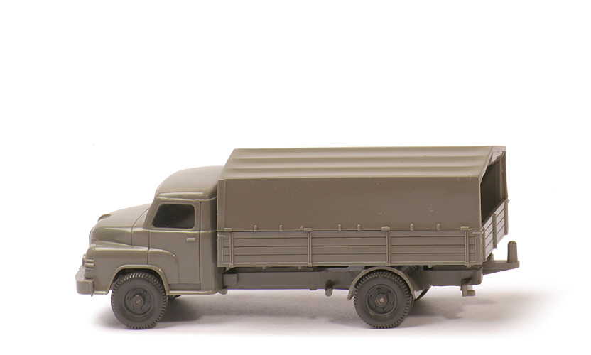 Betongrau ./. steingrau ist kaum unterscheidbar. Die Farbe des Modells wird auch als steingrau eingeordnet. Hier hübsch: auch die Plane ist in der Aufbaufarbe.