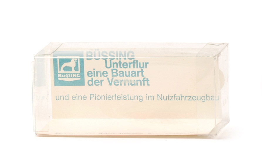 Mit BÜSSING-Schriftzug in silbern auf der Plane und Werbeeinlage. Sonst wie CS 616/4BB und GK 474/5e.