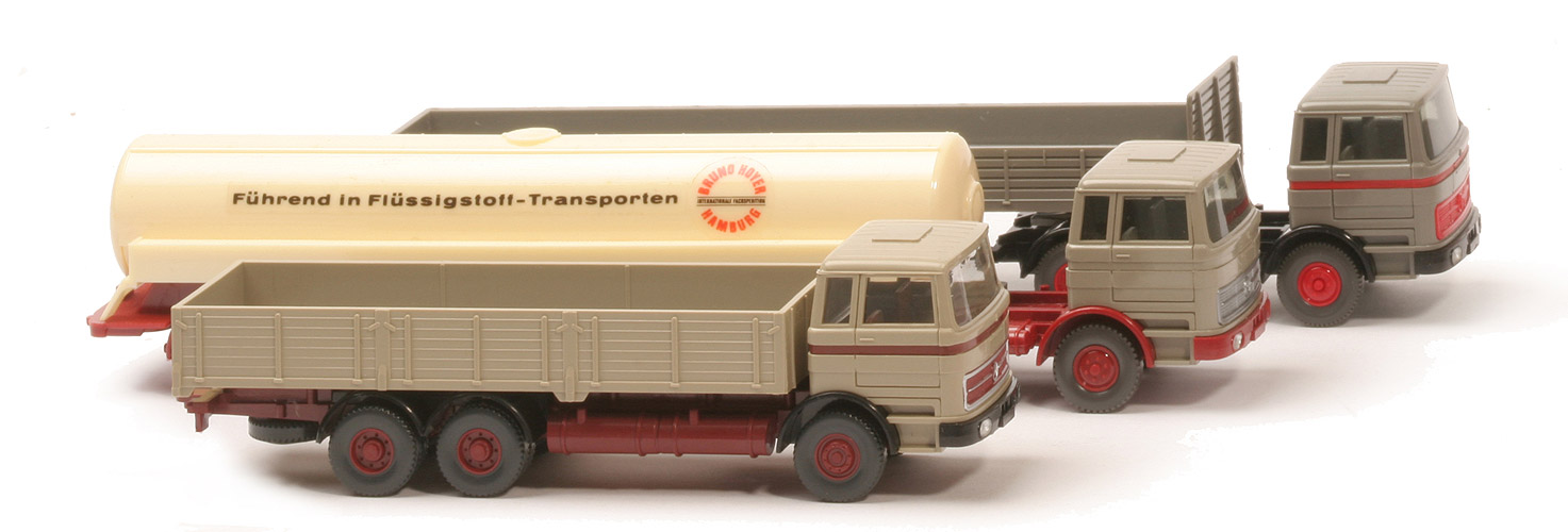 Neuauflage in der Serie. Gegenüber dem klassischen hellgelbgrau ist die Farbe eine Nuance dunkler. Die Farbe unterscheidet sich deutlich von der der Werbemodelle Hoyer (olivgrau) und Herzog (betongrau). Mit hübsch bedrucktem Grill und umlaufendem Streifen.
