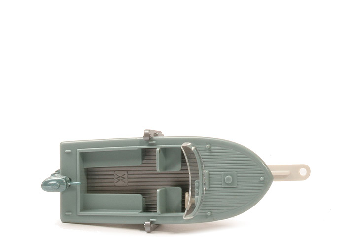 Motorboot auf Anhänger - grünblau, Motor ca. diamantblaumetallic, flache Scheibe - 95/2b