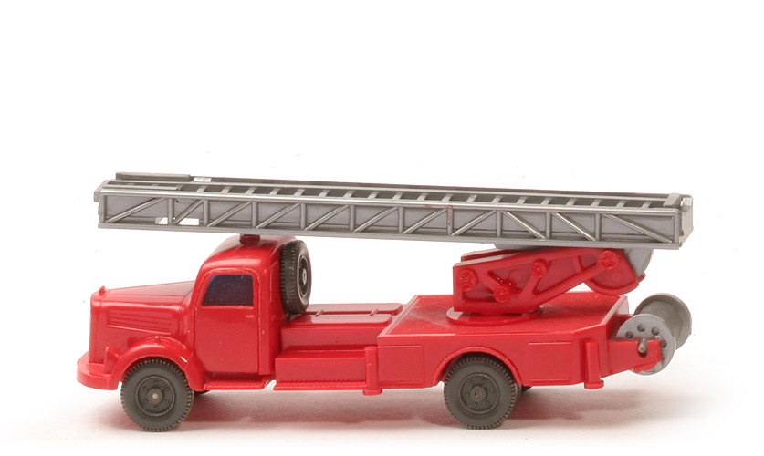 // kneule's wiking standards - MB L 3500 S Alter Leiterwagen ein Blaulicht durchgesteckt, FH, CH, Aufbau rot