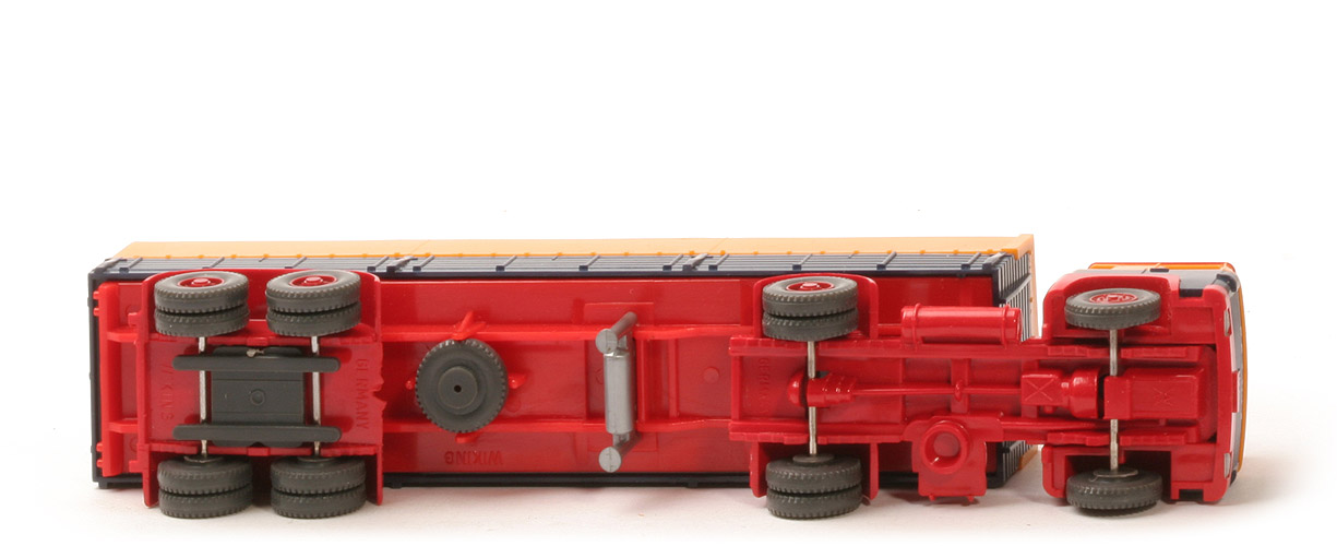 Selten: Auflieger-Chassis orangerot. Das gibt es sonst nur beim Werbemodell Kontinent-Möbel. Scheinwerfer gesilbert. Wunderschönes Modell! | |