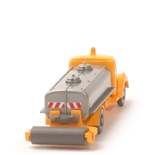 Modell aus der Markenserie des PMS: "Magirus-Deutz". Der Warnlichtsockel ist einfach auf das nach vorne abfallende Dach geklebt. So ist es skurril nach vorne geneigt. Die Walze ist über die Halterung an den Tank gesteckt. Rückschritt gegenüber dem Serienmodell von 2016: keine Inneneinrichtung mehr, kein Lenkrad, geringer "Bedruckungskomfort".