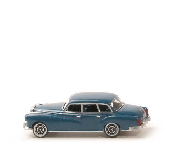 Wunderbar gestaltetes Modell! Begeisternd, was moderne filigrane Bedruckungstechnik aus der nun 57 Jahre alten Karosserie (1962) herausholen kann. Silberne Bedruckung der Fensterrahmen, Zierlinien, Türgriffe und des Mercedes-Stern am Heck. Die Farbangabe "grünblau" hat nichts mit der gleichnamigen Bezeichnung von Holger Wanner zu tun. Dieses "Grünblau" entspricht etwa einem helleren Ozeanblau nach Wanner. Ohne integrierten Zughaken und mit neuem WIKING-Logo.