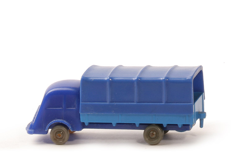 Schöner Fiat hier mit Cowboy-Verdeck (nach CS 1341/1D) in ultramarin. Im GK ist das Modell nicht wirklich gelistet. Es gibt dort keine hohen Pritschen auf Kabine/Chassis ultramarin und Modelle mit Verdeck haben demnach immer flache Pritschen. Etwas irritierend ist die unterschiedliche Bemalung: vorne weiß, hinten silbern. Das Modell kann auch später so kombiniert worden sein.