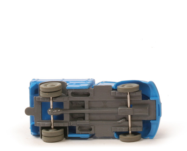 Ungewöhnliches Modell: Die Zugmaschine hat ein basaltgraues Chassis, ist unbemalt und es war nie eine Kiste mit Ölfass eingeklebt