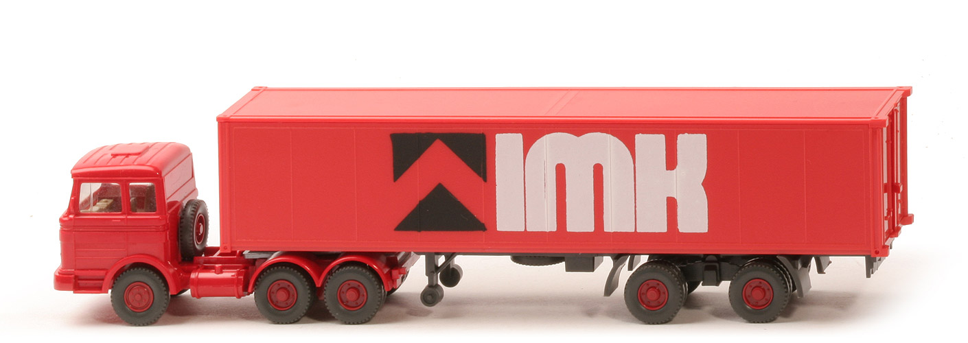 Gelistet im GK als Koffersattelzug. Es handelt sich hierbei um den verklebten Glattwandcontainer ohne seitliche Türen. Die rote 2223-Kabine gibt es nur beim Schieder. Modelle mit Spiegeln und ohne Scheibenwischer sind zeitlich zwischen 1978 und 1981 einzuordnen. |