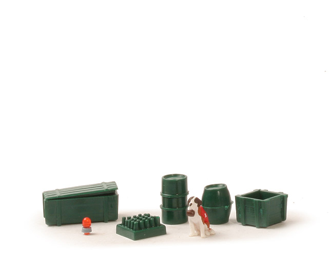 Schönes Ensemble vom Unimog Museum. Der Zugwagen hat einen längeren Radstand als die Standard-Modelle (deshalb U 402). Dem Modell ist schönes Zubehör beigefügt: ein Bernhardiener (!), ein Ölfass, ein Bierfass, eine alte quadratische Getränkekiste, eine alte quadratische alte kleine Kiste, sowie eine neue große Kiste mit Deckel in einem kräftigen Patinagrün. Ferner liegt ein orange- transparentes Warnlicht nebst Sockel in einem hellen Graublau bei.