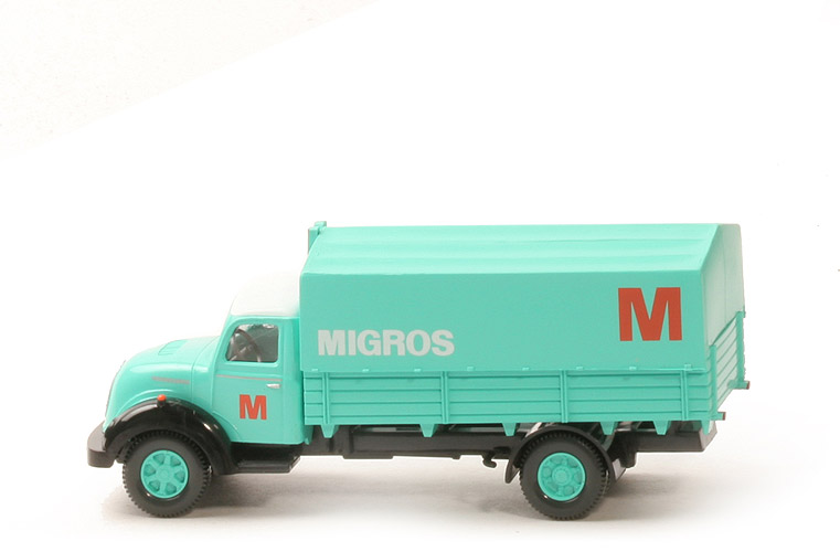Die Farbangabe "schiefergrau" für die Inneneinrichtung findet sich nicht in der Farbkarte von Holger Wanner. Bei WIKING heißt die Grundfarbe des Modells offiziell "mintgrün" - das entspricht gut dem "minzgrün" bei Wanner. Wunderbar bedrucktes Modell! |