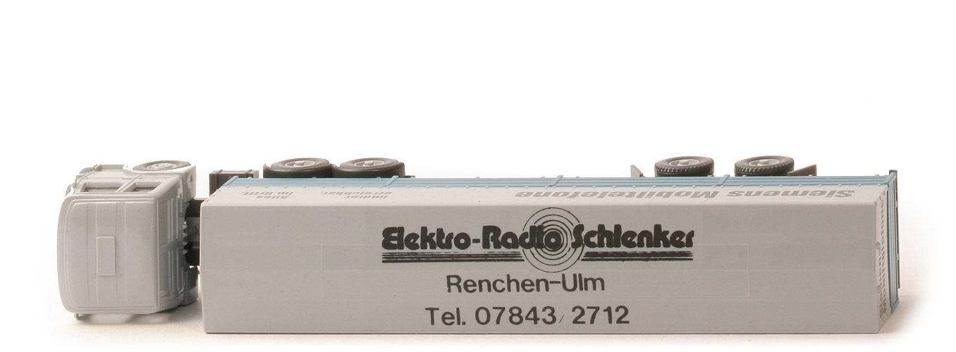 Siemens-Werbemodell mit Zusatzbedruckung der Plane oben "Elektro-Radio-Schlenker, Renchen-Ulm".
