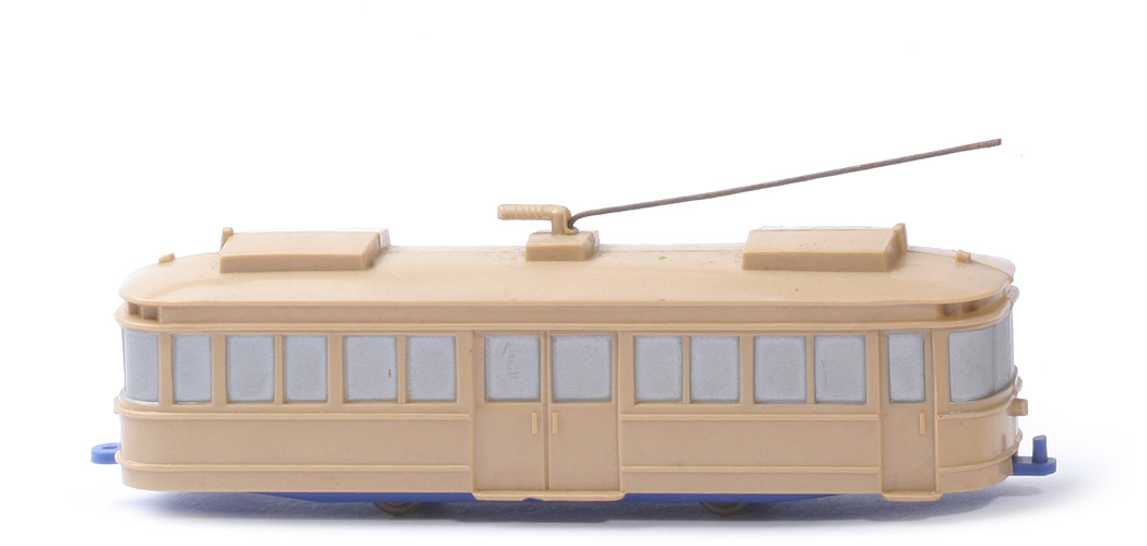 Straßenbahnen     Straßenbahn 2-Achs uv      Straßenbahn 2-Achs uv Triebwagen     beige, mit Kupplung, Stromabnehmer als Stange    ?