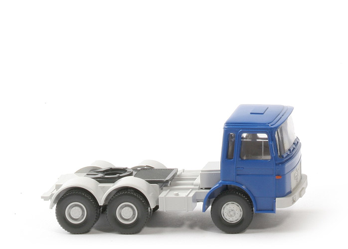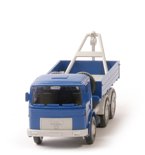 Das Modell passt zum Blumhardt-Serien-Set von WIKING aus dem Jahr 2017. Die kurze MAN F8 Kabine hat hier erstmals ein Dreiachsfahrgestell. Die Pritsche mit der Abschlepp-Vorrichtung kommt ursprünglich vom Volvo N 10 aus 1985.