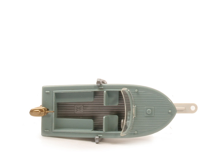 Anhänger     Bootsanhänger     Motorboot     grünblau, Motor goldmetallic, flache Scheibe    ?