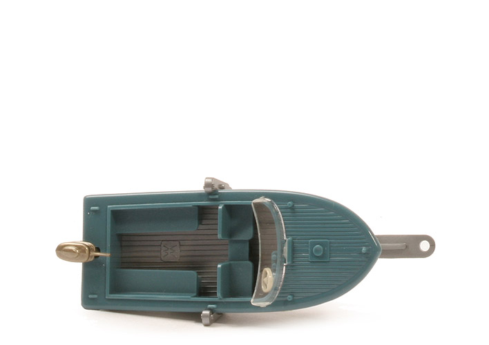 Motorboot auf Anhänger - diamantblau, Motor goldmetallic, flache Scheibe - 95/3g