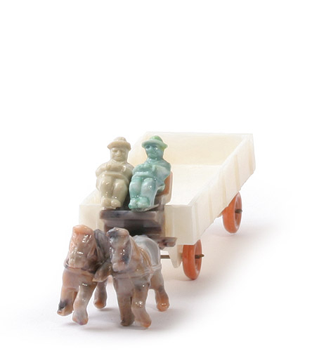 Die Farbe der Pritsche ist in dieser Version in den Katalogen nicht notiert. Mächtig selten! Alte Pferde - jeweils linkes Bein vorne. Letztes Bild: mit zwei lose aufgesetzten Kutschern. |