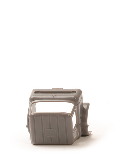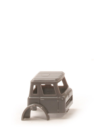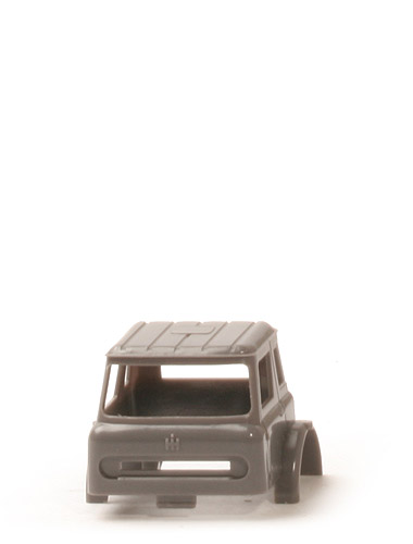 Besonders ist hier die Kabine in Sonderfarbe basaltgrau mit Inneneinrichtung in einem hellen Cremeweiß. Offenbar standen die Bauteile zur Verfügung und wurden zu diesem Modell im Nachhinein zusammengefügt. Der hintere Radlauf der Zugmaschine wurde dazu von rot auf basaltgrau ausgetauscht. Mithin kein originales WIKING-Modell, aber interessante FH-Farbe.