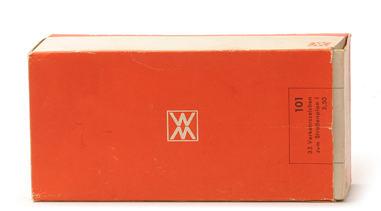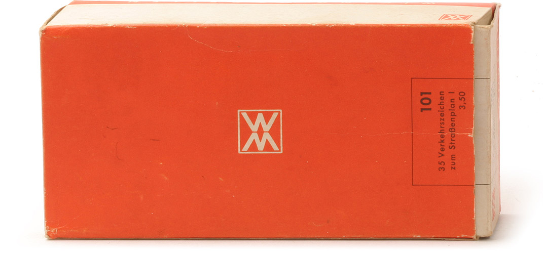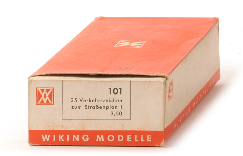 Dieses Verkehrsschilder-Set beinhaltet die Schilder, die auf den WIKING-Straßenplan I aufgedruckt sind. Ein solches Set gab es von 1957 bis 1970. Anfangs gab es Schilder mit flachem Sockel in anderem Karton. Unten Bilder vom letzten Verkaufsskarton ("großer Karton" - 1960 bis 1970).
