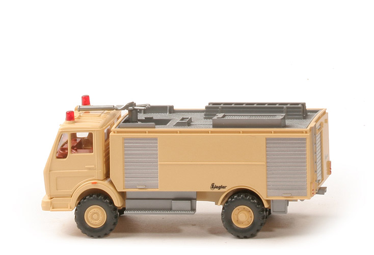 Lechtoys Edition 30 in Podestschachtel "MB 1719 Ziegler TLF 24/50 Tanklöschfahrzeug". Auflage 500. Blinker auf den Kotflügeln vorne orange, Rückleuchten rot. Am Aufbau seitlich und hinten der Schriftzug "Ziegler". Schön exotisches Modell. |