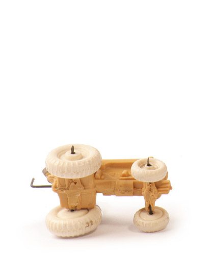 Die Achsen sind nur 0,7 mm stark statt 0,8 mm wie beim Original, Es wurde hier ein bleitoter schwarzer Draht benutzt, der gegenüber leichtem Anbiegen keinen Widerstand leistet und in der hingebogenen Position verbleibt.