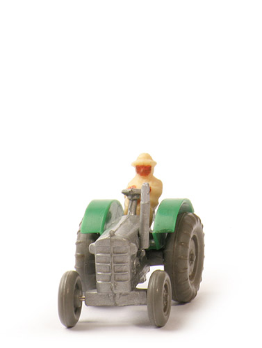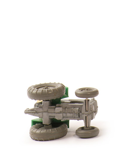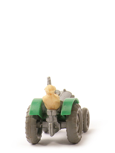 Das Modell besteht aus drei Haupt-Teilen: Bauteil Vorderwagen mit Haube, Motor, Chassis und Achshalterungen, Bauteil Schornstein und Bauteil Kotflügel. Bei der Plagiatsreihe des ersten Rollachser-Treckers ist immer nur das Bauteil Vorderwagen etc. und der Schornstein nachgemacht: hier in silbern. Skurrilerweise sehen wir hier allerdings auch noch das Plagiat des Fahrers, das bereits in allen Merkmalen als Plagiat eines Kutschers aktenkundig ist (siehe hier ). |