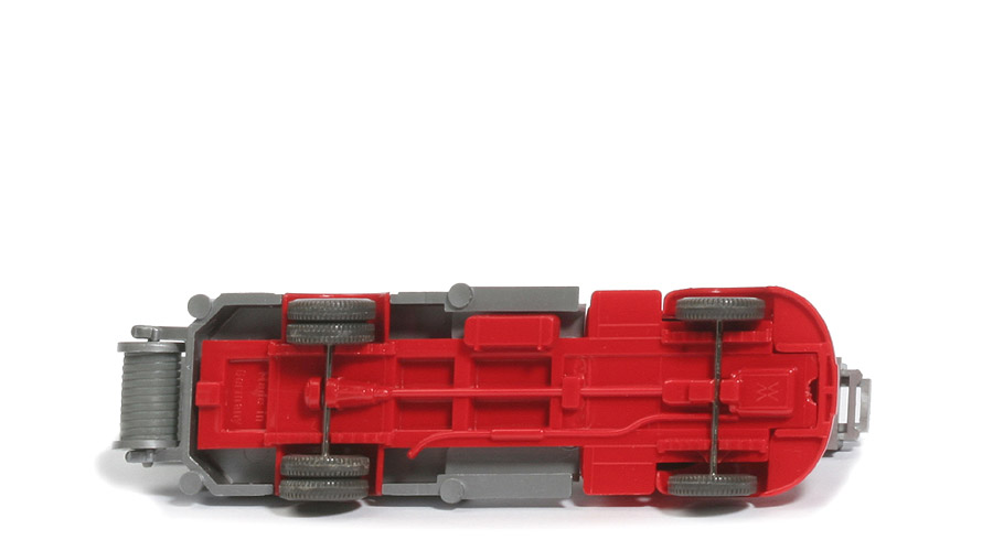Alle bekannten Aufbauten in Silber sind der in der Version "Führungsstege Aufbau - ohne" (siehe Details oben) ausgeführt. Später wurde der Aufbau für die Made in Germany - Chassis von unten innen mit 2 Führungsstegen ausgestattet. (siehe nochmals Führungsstege Aufbau Unterseite: Version 3: mit zwei Führungsstegen). An sich müsste die Kabinenversion mit Einzelblaulicht diese späte Aufbauversion haben - insbesondere, weil auch schon bei Vorgängermodellen mit Blaulichtleiste aber schon mit Blinkern keine frühen Aufbauten Version 2 anzutreffen sind.
