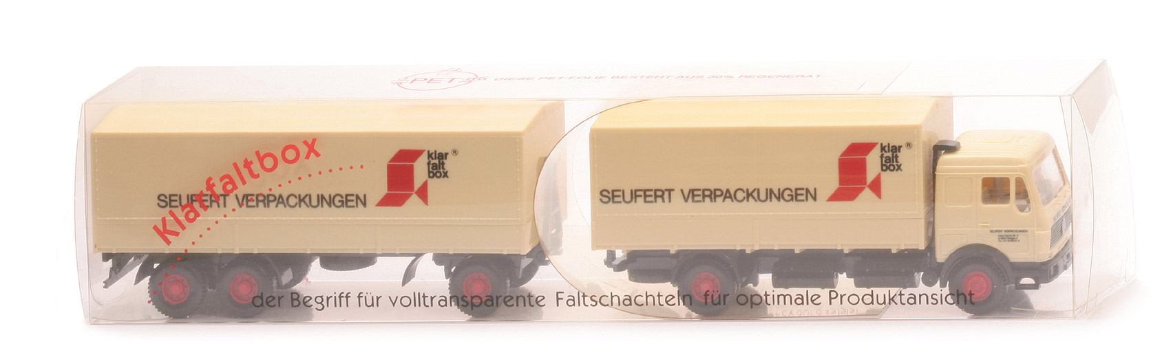 In Klarsichtschachtel mit Werbung für eben diese "Klarfaltbox".