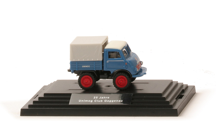 "Brillantblau" ist in der Farbkarte von Holger Wanner nicht enthalten. Schönes Sondermodell in Podestschachtel "25 Jahre Unimog Club Gaggenau". |