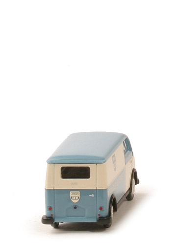 Beschriftung durch die Schablonierung seitlich oben Negativdruck DKW-Logo, "DKW" in Wappen, unten Positivdruck "Kundendienst" und hinten das Wappen in Negativdruck. Offizielle Farbangabe "pastellblau". |