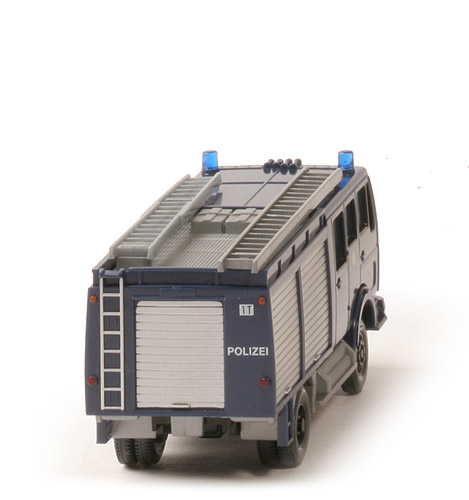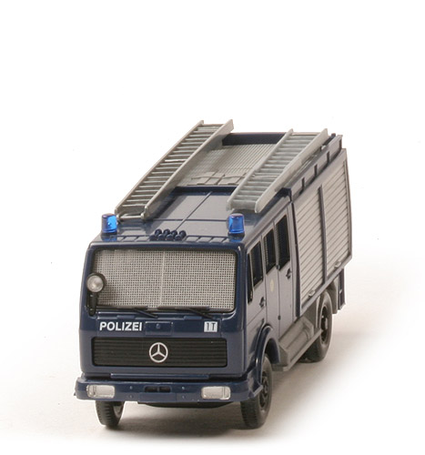 Lechtoys Edition 23 in Podestschachtel "MB 1017 A GGKW (Gerätegruppenkraftwagen) Polizei Berlin". Auflage ca. 500. Die Farbangabe "saphirblau" findet sich nicht in der Farbkarte von Holger Wanner. Dort wäre das ~enzianblau.