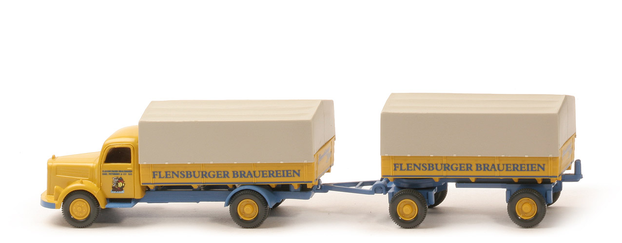 Collect & Invest (21): "Ein Mercedes-Benz Lastzug der Flensburger Brauerei Emil Petersen GmbH & Co. KG. Im Einsatz auf den Straßen Schleswig-Holsteins in den 50er/60er Jahren."